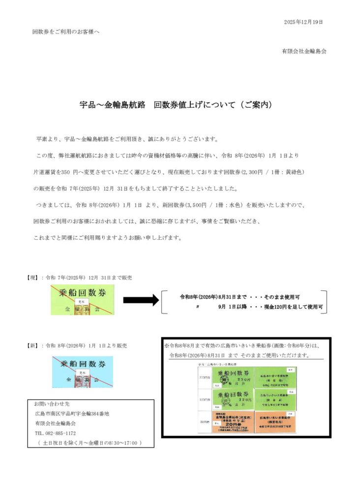 回数券値上げについて(2026年1月1日~)